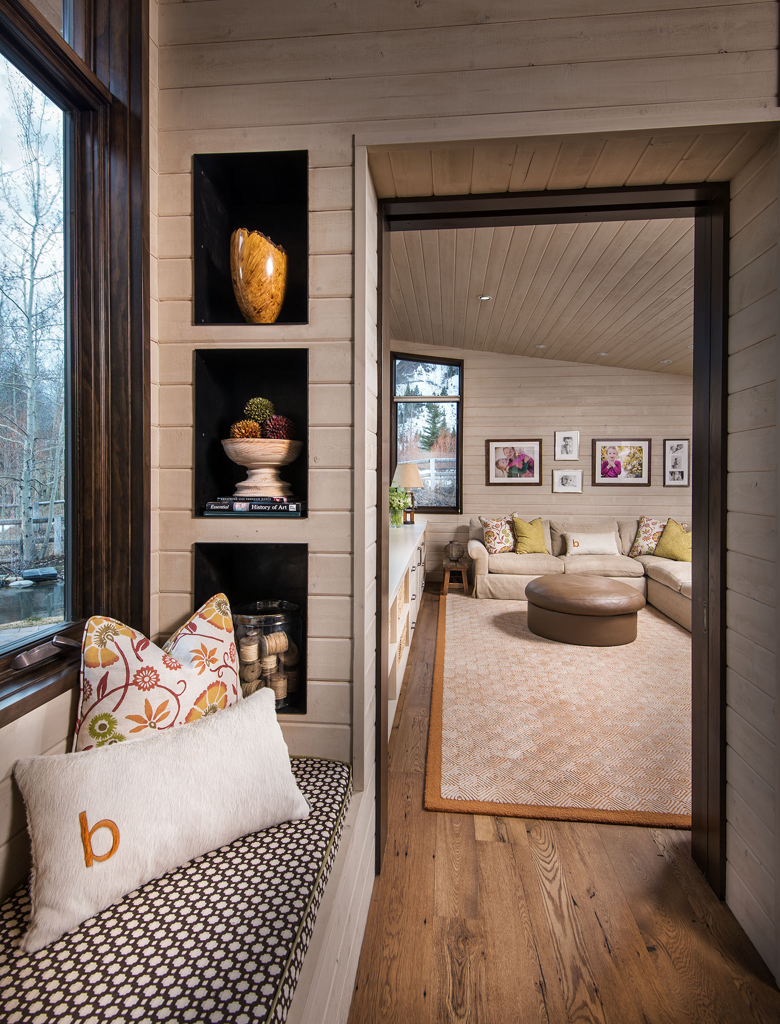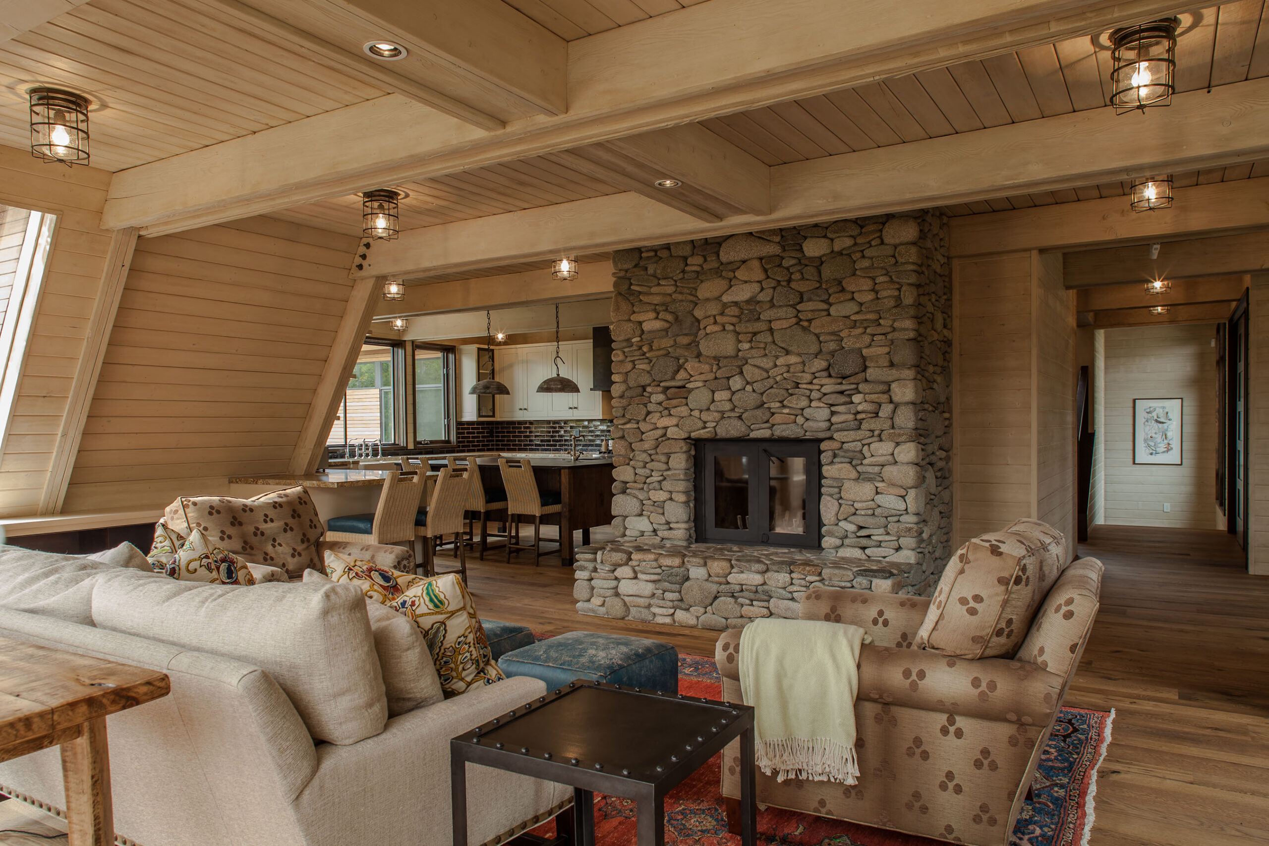 Located in Hulen Meadows subdivision north of Ketchum, this project is a remodel of a classic vacation A-frame house that had previously been remodeled several times. The design motivation was to save the strengths of the original A-frame and reinforce and enhance its place as the centerpiece of the home. The solution reorganizes the layout, opening up the original space, then relocating and expanding the kitchen and entry, adding a family room and reworking the master suite. The design also reworks the previously added bedroom wing into three bedrooms and baths.