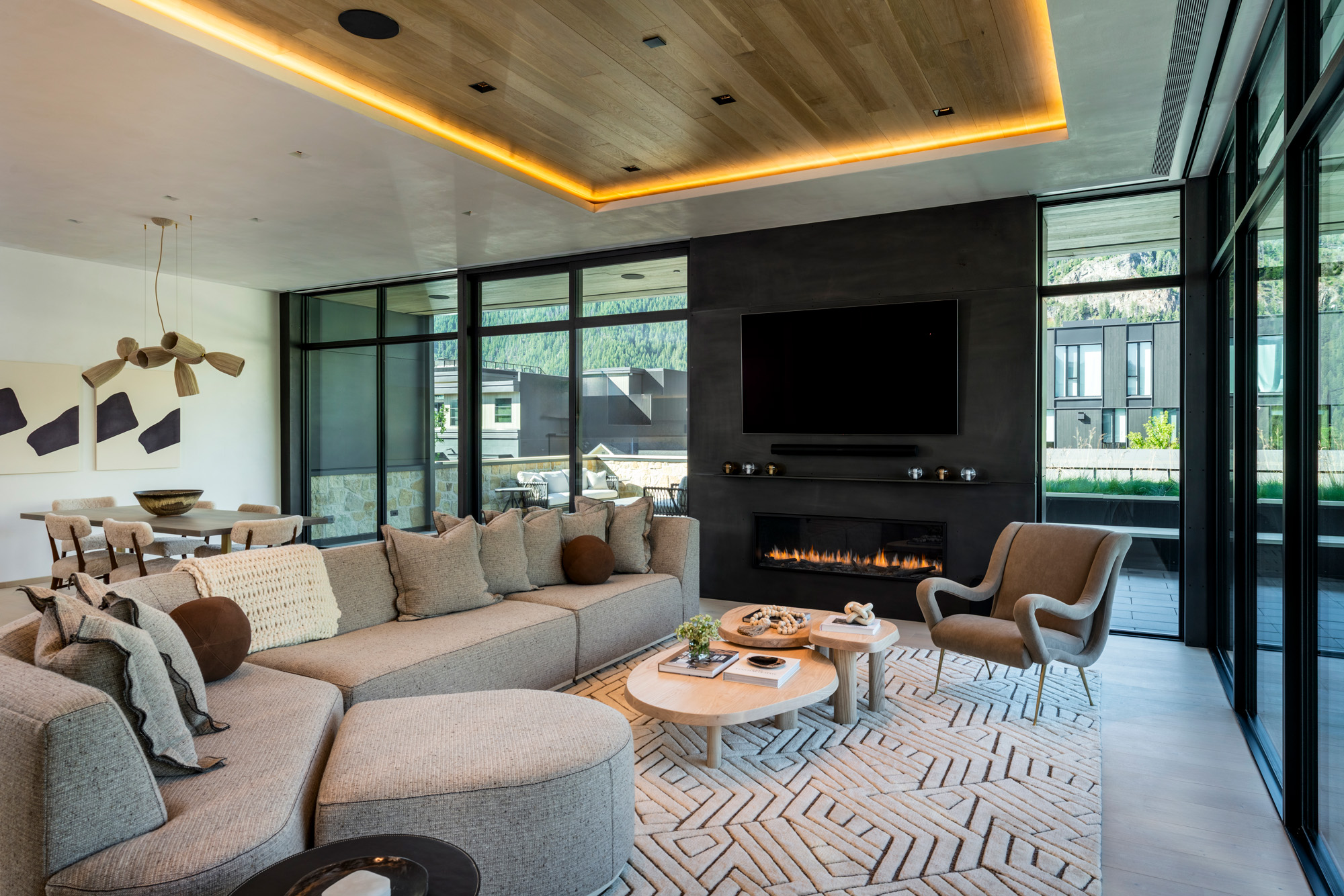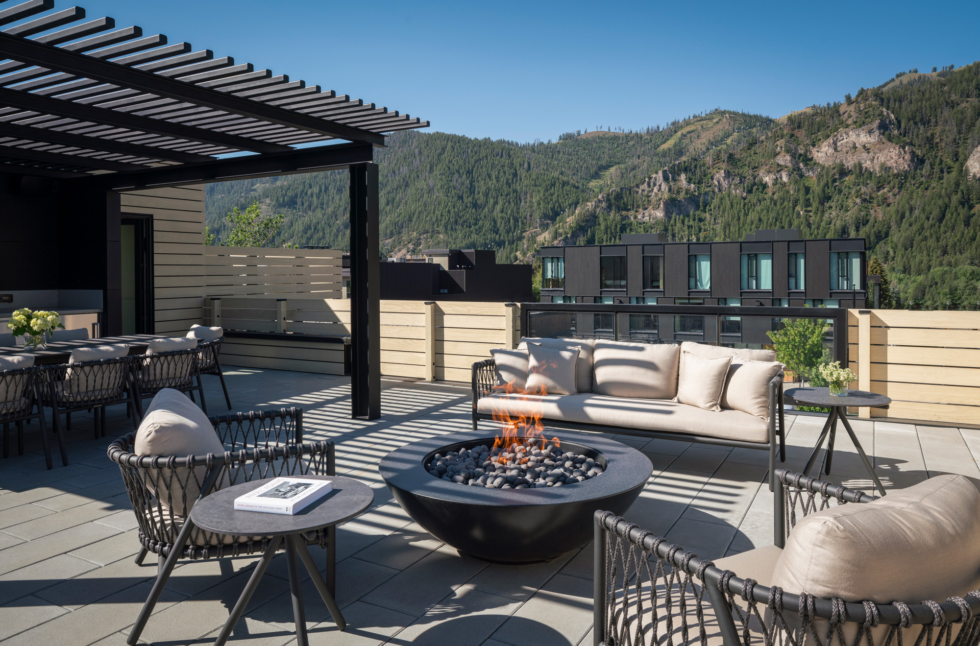 This mixed-use project in downtown Ketchum integrates a historically significant 1930s log cabin with contemporary commercial and residential space. The 744-square-foot cabin, listed on the Ketchum Historic Building List, was repositioned to the corner of the site to preserve its visibility within a denser urban context. New construction is set back to maintain a clear distinction between old and new, drawing on design approaches found in European mountain communities where traditional structures coexist with modern interventions. The program includes office space within the historic cabin, residential units above, and a third-floor outdoor social terrace. Restoration efforts honored the cabin’s heritage.